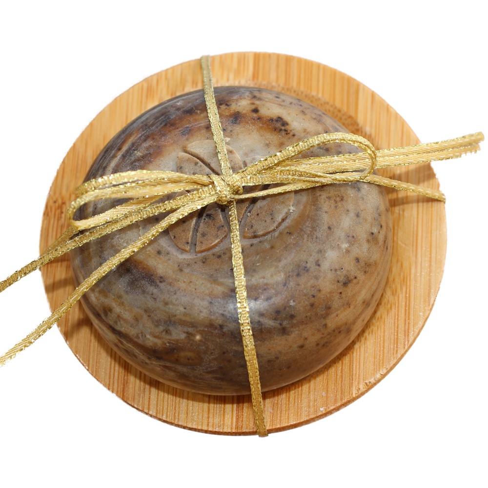Produktinformation "Kaffeeseife / Küchenseife rund mit Bambusschale rund"